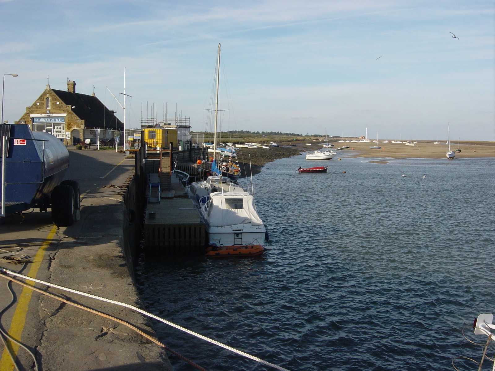 The open sea passage would have been some 52 miles and was itself planned to take around 4hrs 45mins, arriving at the Wells Harbour bar (the sand bank outside the Well Harbour Channel) at around High Water at 3.15pm Local Time and, preferably, a little before, when we would have then skirted west of the Wells leading buoy and then steered between the red Port and green Starboard buoys that line the recently altered channel.