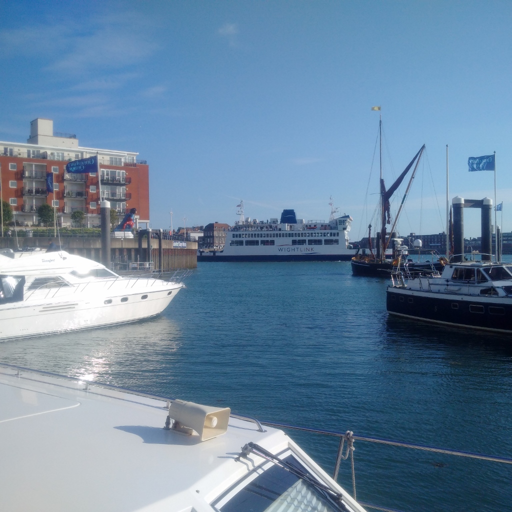 The fourth leg of our South Coast cruise and this one represented a voyage further into the heart of The Solent. Now we are in this shelter, the weather was not quite so important but it was still fine enough after a couple of days' rest in Portsmouth for us to continue our journey to a marina which would be happy to accommodate Lady Martina for a week's shore leave at reasonable rates. It was another well-planned and executed cruise taking advantage of the tide and also arriving at Itchen Marina at HW Slack to be able to manoeuvre into a very tight berth at a pontoon where tidal eddies can be a problem... We fielded complements on our skill...